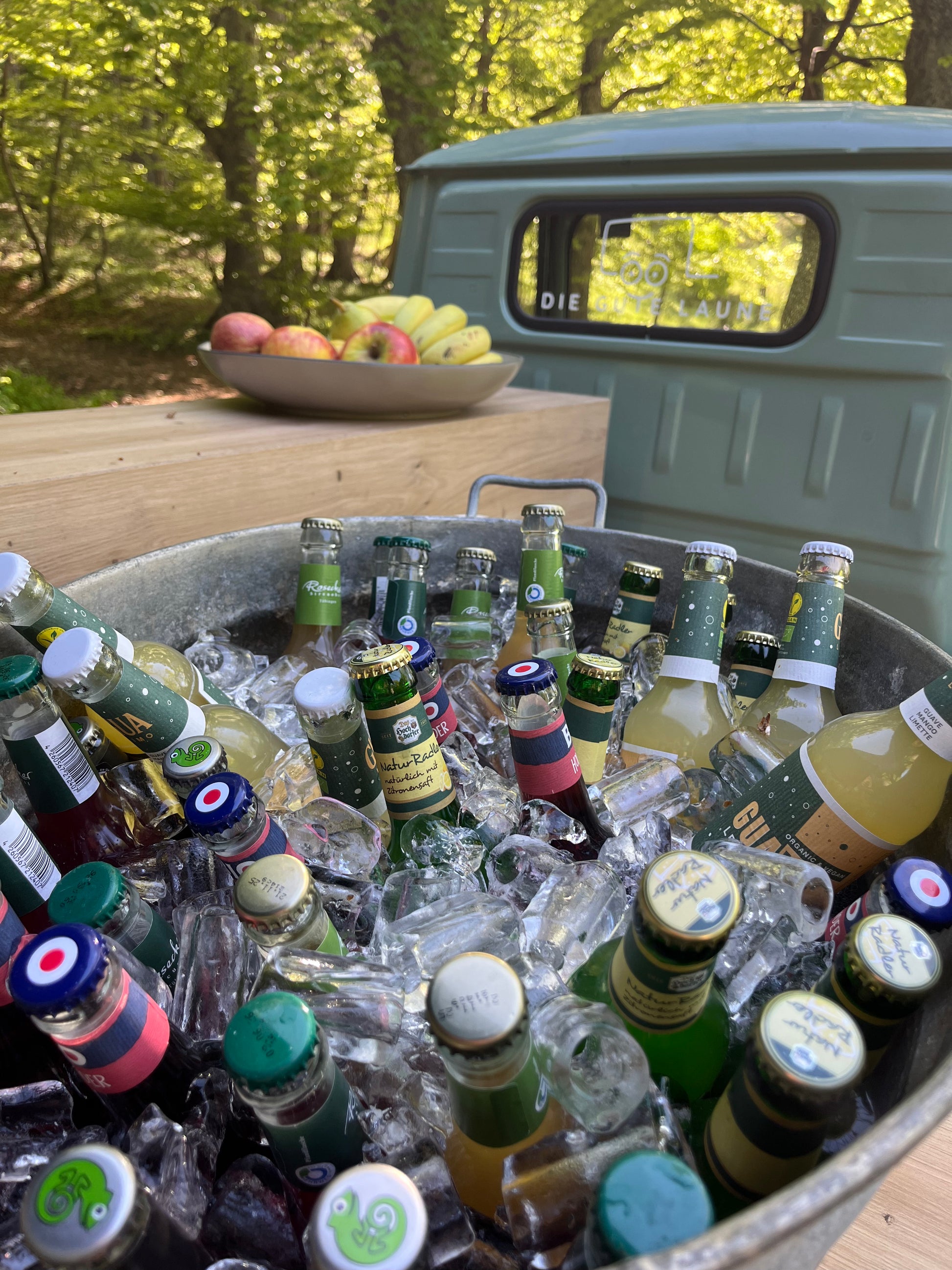 Wir von Die Gute Laune erwartet euch an zwei unterschiedlichen Überraschungsorten entlang des Weges und versorgen euch mit erfrischenden Getränken und einem bunten Grazing Table an einem echten Kraftort inmitten der Natur!
